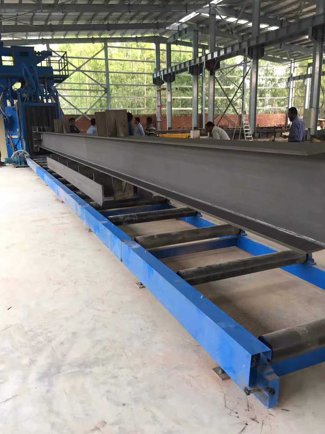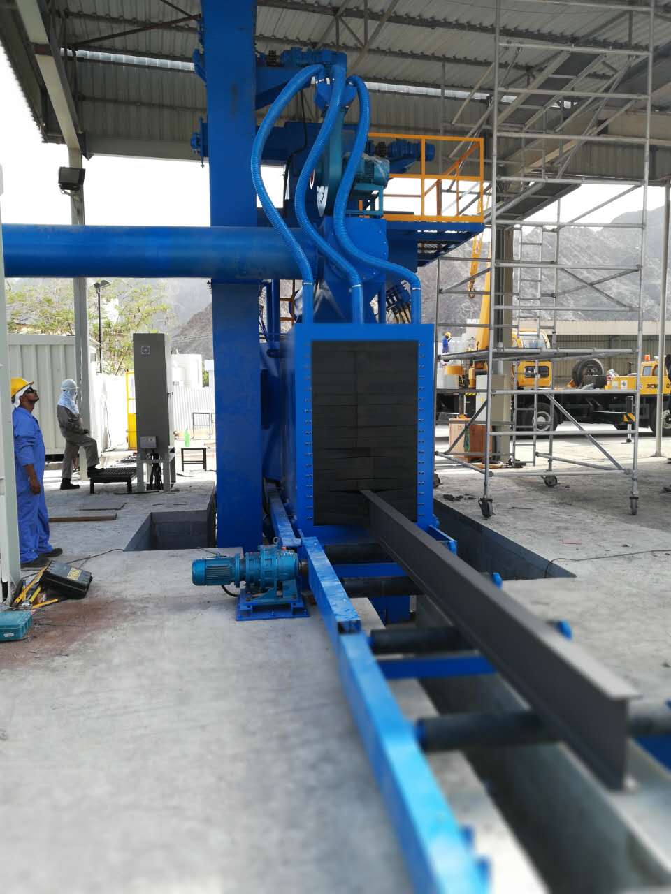 Дробеструйная машина - это вид дробеструйного оборудования, которое применяется для очистки поверхности сварочных заготовок стальных конструкций, стали h-типа, листов и других профилей. Он может очистить ржавые пятна, ржавую окалину, сварочный шлак с поверхности заготовки, а также сварочное напряжение, чтобы снять напряжение и улучшить качество поверхностного лака и устойчивость стальной конструкции и стали к гниению.